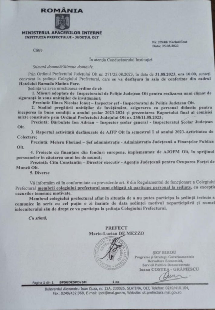 Nu e reel, dar e adevărat ! Ultima ședință a Colegiului Prefectural s-a consumat! La Ramada, fain hotel! Sub convocare cu antet, ștampilă și semnătură și mesaj pe WhatsApp!