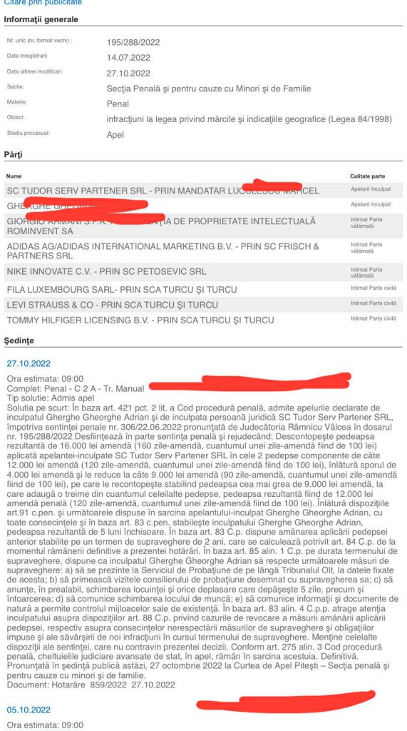 De fapt, cu 2 excepții, obiectul de activitate al grupului de firme este comerț cu amănuntul și în special, cel cu îmbrăcăminte. Câteva pubele de gunoi, 1000/ achiziționate pe o ală firmă din grup, Terra Sat Srl, în 2020, la Cungrea/189.080 lei/ a fost o altă pleașcă și între timp, activitatea antreprenorială, de comerț cu amănuntul , a pendulat între țoale și rețete de prăjituri. De comis, a comis-o însă Adi, nu doamna Stela ! Adi antreprenorul a fost condamnat penal, în 2022, pentru activitatea pe SC Tudor Serv Partener Srl, iar pârâții sunt iluștrii !