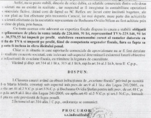PRIN Ordonanța Parchetului de pe lângă Tribunalul Olt din noiembrie 2015 se dispune începerea urmăririi penale in rem cu privire la săvârșirea infracțiunii de EVAZIUNE FISCALĂ /Dosar 406/P/2015 !